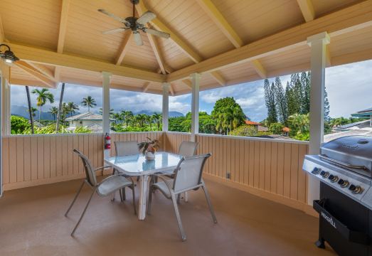 There is a large back yard and a BBQ Grill for family fun. The living room features a 55” smart high TV, also high speed internet. The master bedroom has a king bed with a flat screen TV and a remodeled bathroom consisting of an over sized tub and walk in shower, the 2nd and 3rd bedrooms have queens beds and the fourth bedroom has 2 twin beds. There is a jog walk path along the golf course of Ka Haku Road leading to shops, restaurants, the community park, and to the 1 Hotel Hanalei.