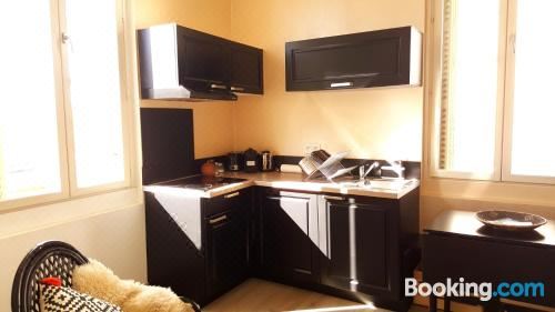 这家空调公寓配有1间卧室、起居室、带冰箱和咖啡机的设施齐全的厨房以及1间带淋浴设施和免费洗浴用品的浴室。这家公寓还提供休息区、洗衣机以及1间带吹风机的浴室。
