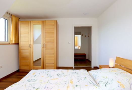 Beautiful 2-family house, 2 storeys, detached. Above Schonach 300 m from the centre of Schonach, 4 km from the centre of Triberg, in a quiet, sunny position in the residential district. Parking at the house. Grocery 300 m, supermarket 1.5 km, restaurant, bakery 300 m, bicycle rental 500 m, 10 minute walk to the centre, bus stop "Obertal, Schonach" 600 m, railway station "Triberg" 4 km, outdoor swimming pool 500 m, lake Blindensee (Hochmoor) 1 km. Minigolf, ski lift 500 m, cross country ski track 300 m. Nearby attractions: Triberger Wasserf?lle 6 km, Freiburg 50 km, Heimatmuseum Triberg 6 km. Well-known ski regions can easily be reached: Feldberg 50 km. Well-known lakes can easily be reached: Titisee 50 km. Hiking paths: Schwarzwald 10 m. "Blackforest Birdnest", 2-room apartment 65 m2, on the top floor. Bright, modern and cosy furnishings: large living room with cable TV (flat screen). Exit to the balcony. 1 room with 1 double bed (2 x 90 cm, length 200 cm). Kitchen (oven, dishwasher, 4 ceramic glass hob hotplates, toaster, kettle, electric coffee machine) with dining table. Exit to the balcony. Bath/WC. Heating. Balcony. Balcony furniture. Facilities: hair dryer. Internet (WiFi, free). Parking (1 car) at the house. Please note: non-smokers only. Smoke alarm.