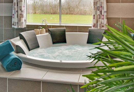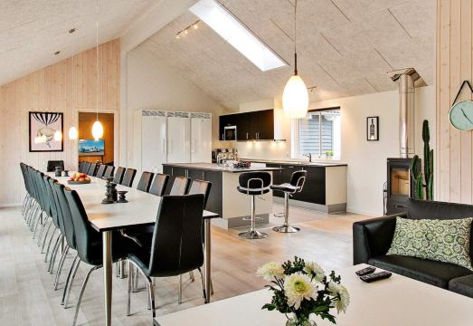 This well-equipped Skanlux holiday home offers all kinds of leisure and relaxation options. The house is also suitable for birthday parties, small weddings, and business events. And if you're traveling with more than the permitted 24 people, or if not all guests can be divided between the 9 bedrooms with two single beds each, you can also rent one of the neighboring houses, which are also spacious and generously proportioned and have many more bedrooms. The house has an impressive pool area with a large pool with a counter-current system and water slide, a sauna, a bathroom, and a large whirlpool for 4-6 people. In the activity room, you can relax at the bar while others play pool. You can also watch a movie or challenge each other at table tennis, darts, and table football, while others try out the various games on the PlayStation 4. The house is very spacious and well-designed, built around 3 separate sleeping areas. Each area has 3 bedrooms and a bathroom. The living/dining room is tastefully furnished with a stereo system with CD player, a flat-screen TV, a sofa set, and a wood-burning stove. The house is part of a series of identical houses, so the furnishings may vary from the photos. Due to the size of the house, the final cleaning fee also differs from the stated price. Payment for consumption, cleaning, and the security deposit must be made in cash to the owner in the house. Please note: No arrivals or departures on Saturdays during the low season. No rentals to youth groups. 24 person holiday home in Hasselberg