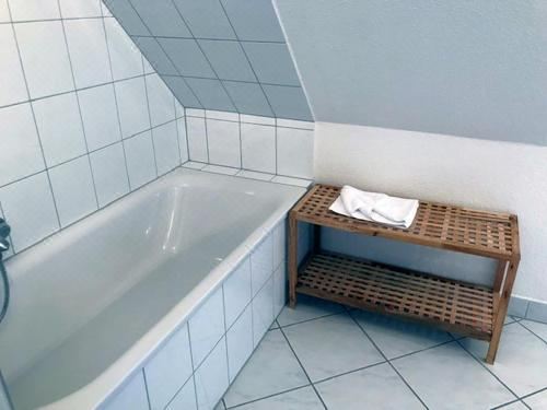 这家度假屋配有2间卧室、带冰箱和洗碗机的设施齐全的小厨房以及1间带淋浴设施和吹风机的浴室。这家度假屋还配备电视以及1间带浴缸的浴室。