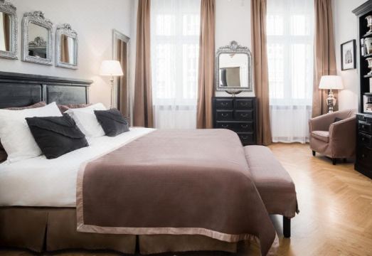 Housed within a historic building, Palacina Berlin boasts elegantly appointed apartments featuring a harmonious blend of antique-style and modern furnishings. Each apartment exudes charm and comfort, with amenities such as a luxurious marble bathroom, a flat-screen TV, and exclusive access to a serene courtyard and a rooftop terrace.