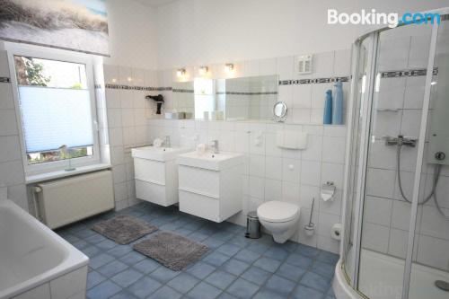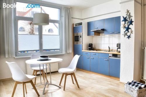 Ferienhaus der Kurzen Wege Objekt 40105坐落于瓦尔内明德,距离瓦尔内明德海滩(Warnemunde Beach)有6分钟步行路程,配备露台、花园和免费WiFi。这家公寓距离罗斯托克港口有11公里,距离罗斯托克动物园有13公里。
