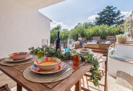 Beautiful, cosy 3-family house. In the resort Capriccioli, 8 km from the centre of Porto Cervo, in a sunny position, 200 m from the sea, 200 m from the beach. Private: garden (fenced) lawn and wildlife garden. Outdoor shower, parking at the house. Shop 3.5 km, grocery 3.5 km, supermarket 3.5 km, restaurant, bar 100 m, bus stop "abbiadori" 3.9 km, sandy beach "Spiaggia Capriccioli" 200 m. Sports harbour 8 km, marina 3 km. Nearby attractions: Cala di Volpe 2 km, Siaggia del principe 2 km, Baja Sardinia 14 km, Porto Rotondo 24 km, Arzachena 16 km, Olbia 26 km. Please note: car recommended. "Capriccioli A", 3-room house 60 m2. Comfortable and cosy furnishings: living/dining room with TV (flat screen). Exit to the terrace. 1 double bedroom. 1 room with 1 bed and 1 x 2 bunk beds. Kitchenette (4 hot plates, oven, dishwasher, toaster, kettle, microwave, electric coffee machine). Shower/bidet/WC. Air-conditioning, forced-air heating. Patio partly roofed. Terrace furniture, deck chairs, sitting area. Partial view of the sea. Facilities: washing machine, iron, hair dryer. Internet (WiFi, free). Parking at the house. Maximum 1 pet/ dog allowed. IT090006C2000R9438