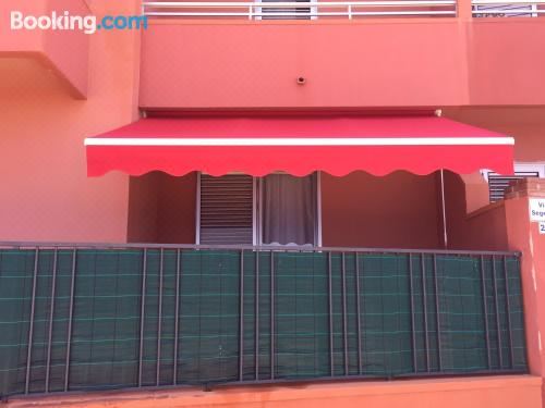 这家度假屋配备2间卧室、1间浴室、床上用品、毛巾、带衞星频道的平板电视、用餐区、设施齐全的厨房以及海景庭院。这家空调度假屋还提供休息区、洗衣机以及1间带坐浴盆和淋浴设施的浴室。