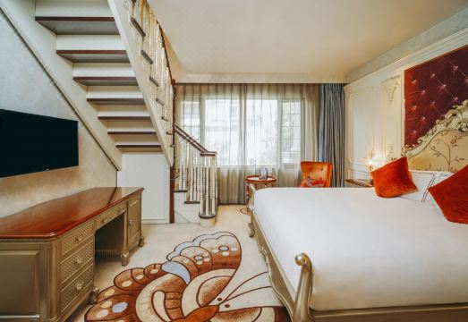 苏州天域花园酒店建筑风格是欧式别墅独立建筑群,层高3层。人工智能现代化设计的酒店有不同风格的房间,环境舒适,客房高雅温馨、浪漫时尚,打造奢华私人空间。