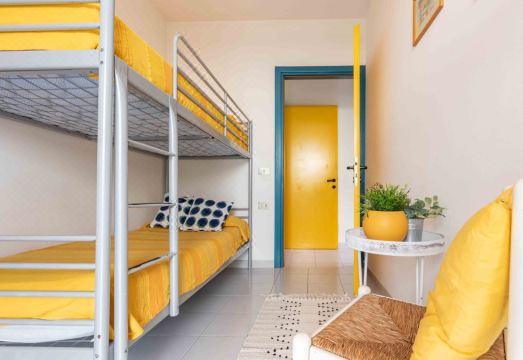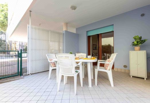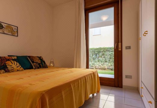 The three-room apartment, with A/C for 4/6 guests, is located on the ground floor and features a fenced garden (no elevator). It consists of a living room with a double sofa bed, TV, kitchenette equipped with a large fridge, one double bedroom, a second bedroom with bunk beds, a safe, a windowed bathroom with shower box and washing machine connection (possibility to rent a washing machine at an extra cost through our agency), WI-FI and one covered parking space per booking. °No pets allowed. °Photos are generic: the accommodation may differ in furniture, decorations and colours.