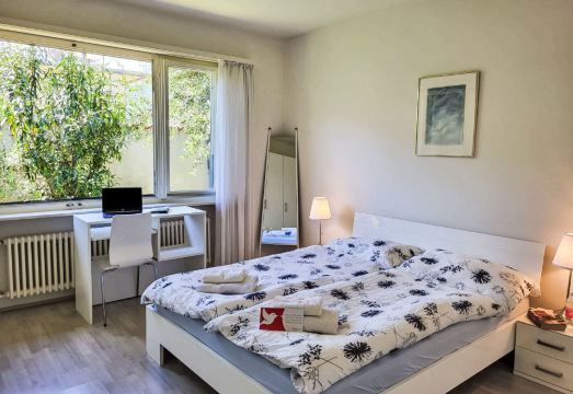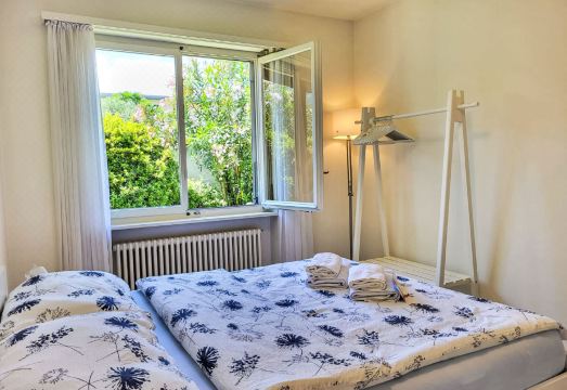 Ascona 5 km from Locarno: Small, cosy, comfortable single-family house "Villetta Isabella", 200 m a.s.l.. In the resort 1 km from the centre of Ascona, in a quiet position in the residential district, 550 m from the lake, 550 m from the beach, in a cul-de-sac, south-west facing position. For shared use: beautiful garden (fenced). In the house: central heating system. 50 m long narrow motor access to the house. Parking at the house. Shop 1 km, grocery 650 m, supermarket 900 m, shopping centre 1.6 km, restaurant 500 m, bakery 250 m, pedestrian zone 1 km, 15 minute walk to the centre, bus stop "Pancaldi Mola Bus 1" 250 m, railway station "SBB-CFF Locarno-Muralto" 4.1 km, outdoor swimming pool, thermal baths "Termali & Salini, Locarno" 4.5 km, lake Lago Maggiore 550 m. Nearby attractions: Lungolago Ascona, Monte Verità, Ascona, Piazza Grande, Locarno Falconeria, Isole di Brissago, Ronco sopra Ascona, Mercato Cannobio IT, Mercato Luino IT. Well-known lakes can easily be reached: Lago Maggiore, Lago di Lugano, Lago di Como. Hiking paths: Cardada, Valle Verzasca, Vallemaggia, Monti di Ronco, Monti di Brissago, Monte Tamaro - Monte Lema Splash & SPA. "Villetta Isabella", 4-room house 114 m2. Object suitable for 4 adults + 1 child. Spacious and bright, modern and cosy furnishings: living/dining room with open-hearth fireplace (only for decoration), TV, international TV channels and flat screen. Exit to the garden, to the patio, south-west facing position. 1 double bedroom with 1 double bed (1 x 160 cm, length 200 cm). 1 double bedroom with 1 double bed (1 x 160 cm, length 200 cm). 1 room with 1 bed (125 cm, length 200 cm). Kitchen (oven, dishwasher, 4 ceramic glass hob hotplates, toaster, kettle, electric coffee machine, Capsules for coffee machine (Delizio - mitbringen) extra). Bath/WC, shower/WC. Small patio, large garden, lawn. Terrace furniture, barbecue, deck chairs (2). Of the garden. Facilities: washing machine. Parking (1 car) at the house. Please note: suitable for families. Non-smoking house. NL-00004008