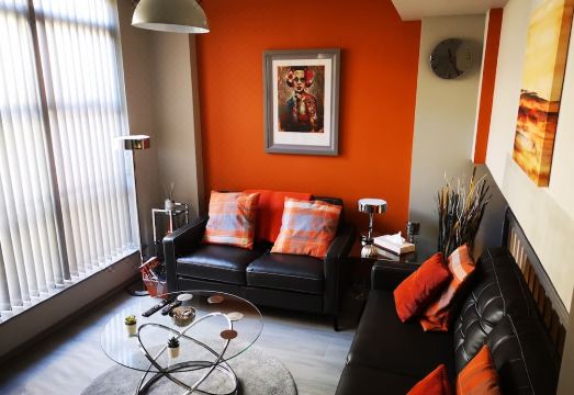 公寓坐落于贝尔法斯特贝尔法斯特市中心,距离圣乔治市场和贝尔法斯特市政厅不到 10 分钟步行路程。 此公寓距离大剧院 0.5 英里(0.8 公里),距离水滨码头艺术大厅 0.6 英里(1 公里)。酒店提供停车设施(车位有限)。此出租式公寓配有带冰箱和烤箱的厨房,让您可以尽情放松享受。独享私人阳台。配备带有线频道的 42 英寸平板电视,此外还可使用免费 WiFi。配备了淋浴/盆浴组合的私人浴室提供浸泡浴缸。