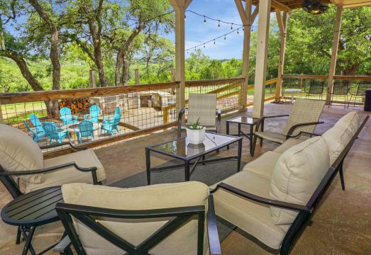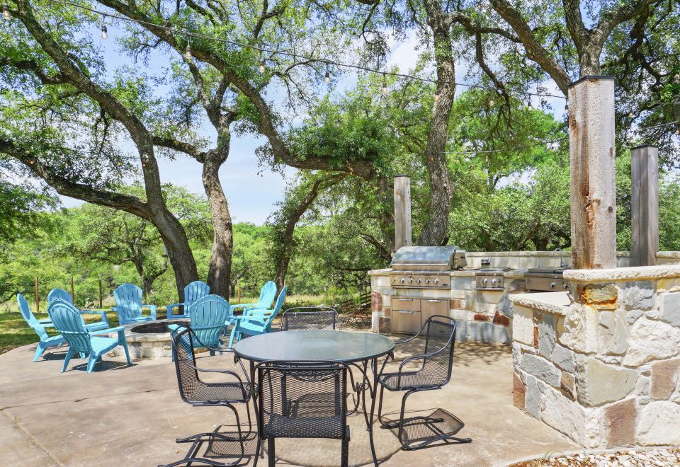 When you’re ready to enjoy the beauty of the Hill Country, the outdoor area has plenty of seating, as well as a fire pit. For outdoor grilling enthusiasts, there is full outdoor kitchen that comes with a range, grill, and sink.