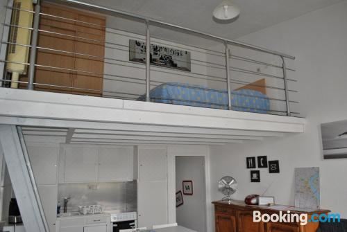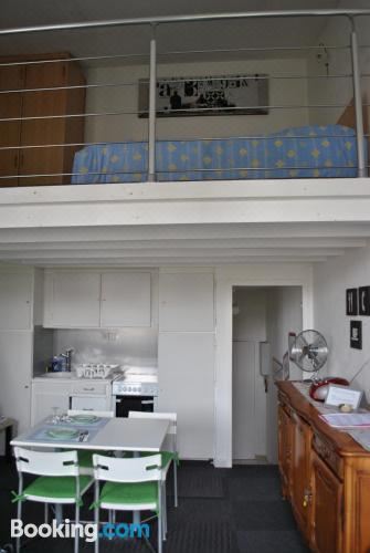 这家空调公寓配有1间卧室、起居室、带冰箱和咖啡机的设施齐全的小厨房以及1间带淋浴设施和免费洗浴用品的浴室。1间浴室配有浴缸,也配有吹风机,提供毛巾和床上用品。