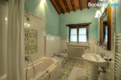 这家空调度假屋配有1间卧室、起居室、带冰箱和咖啡机的设施齐全的厨房以及2间带坐浴盆和淋浴设施的浴室。2间浴室配有浴缸,也提供免费洗浴用品,提供毛巾和床上用品。