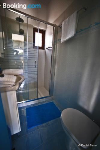 这家空调公寓配有1间卧室、起居室、带冰箱和咖啡机的设施齐全的厨房以及1间带淋浴设施和吹风机的浴室。这家公寓也拥有休息区和1间浴室。