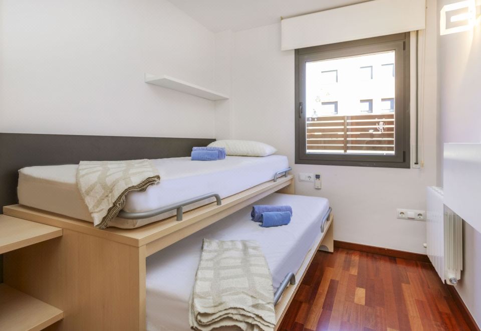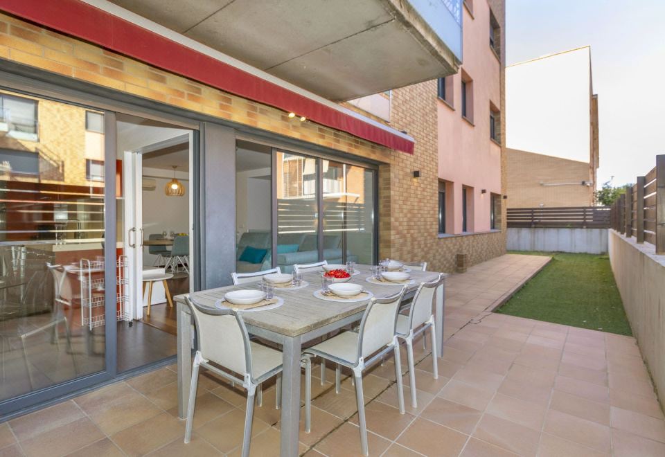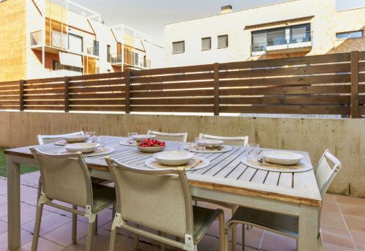 Apartment block "Costa Serena", 3 storeys. In a central, quiet position, 350 m from the sea, 350 m from the beach. For shared use: property (fenced) with lawn, swimming pool angular (6 x 10 m, depth 100 - 180 cm, seasonal availability: 01.Jan. - 31.Dec.). In the house: lift. Supermarket 100 m, restaurant 170 m, bus stop "Sant Antoni de Calonge - Nord" 350 m, railway station "Girona" 38 km, sandy beach 350 m. Sports harbour 3 km, golf course (18 hole) 10 km, tennis 2 km, minigolf 7 km. Nearby attractions: Camí de Ronda - Calas Preciosas 2 km, Water Park Aquadiver 5 km, Avenida de Tiendas - Platja d'Aro 5 km, Via ferrata Cala del Molí 13 km, Peratallada - Pueblo medieval 19 km. The owner does not accept any youth groups. Neighbourhood highly sensitive to noise. Quietness and good behaviour expected. "Costa Serena", 5-room apartment 93 m2 on 2 levels. Practical and comfortable furnishings: living/dining room with dining table and satellite TV. Exit to the patio. 1 room with 1 french bed (150 cm, length 190 cm), air conditioning. 1 room with 2 beds (90 cm, length 190 cm), air conditioning. 1 room with 1 french bed (180 cm, length 190 cm), bath/bidet/WC, satellite TV and air conditioning. Open kitchen (oven, dishwasher, 2 ceramic glass hob hotplates, toaster, kettle, microwave, grill, electric coffee machine) with dining table. Exit to the patio. Shower/WC. Heating. On the lower ground floor: 1 open room, without window with 2 beds (90 cm, length 190 cm). Large patio. Terrace furniture. View of the swimming pool and the garden. Facilities: washing machine, dryer, iron, children's high chair, baby cot for up to 2 year olds, hair dryer. Internet (WiFi, free). Garage at the house. Please note: non-smokers only. Instead of an enclosed bedroom, some sleeping areas are located in an open-plan area (gallery, alcove, etc.). HUTG-018104 // Reg. Nr.: ESFCTU00001701500046119500000000000000000HUTG-0181041
