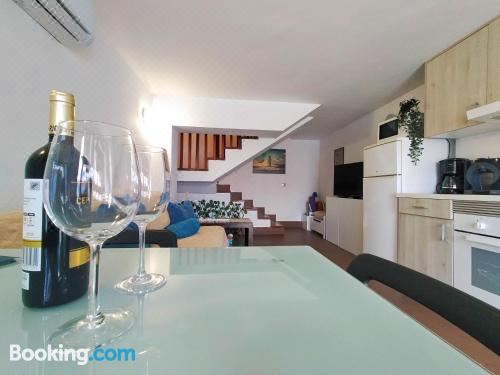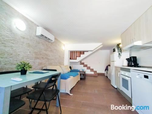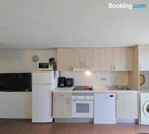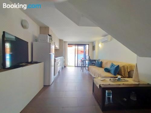 这家空调公寓配有1间卧室、起居室、带冰箱和咖啡机的设施齐全的厨房以及1间带淋浴设施和吹风机的浴室。这家公寓也拥有休息区和1间浴室。