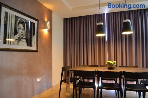 这家空调公寓配有3间卧室、起居室、带冰箱和电热水壶的设施齐全的厨房以及2间带淋浴设施和免费洗浴用品的浴室。2间浴室配有浴缸,也配备吹风机,提供毛巾和床上用品。