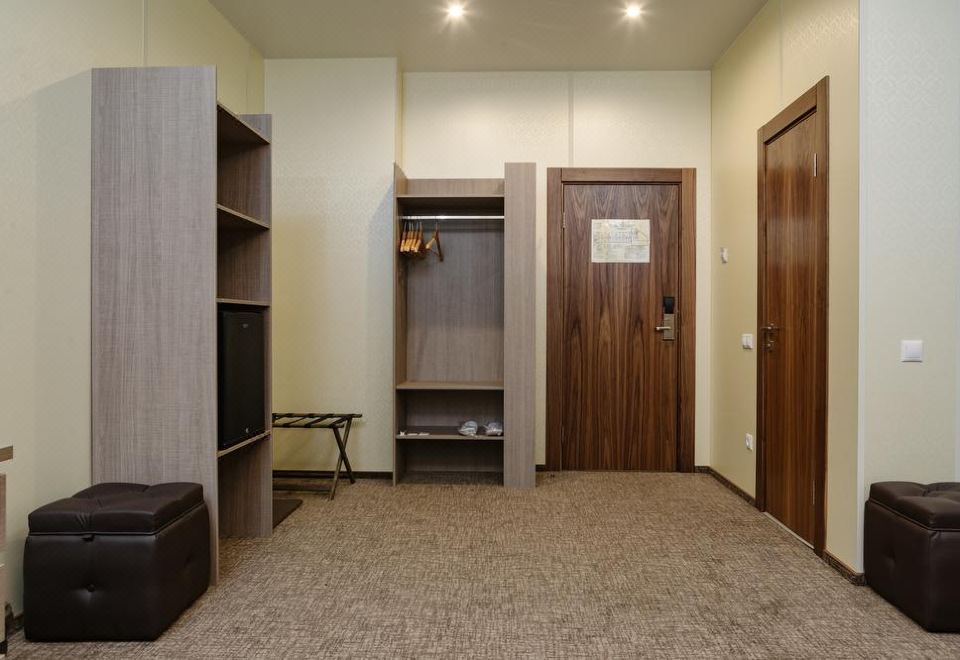 Rooms of various categories are available for booking: Standard, Comfort and Suite. The rooms are equipped with comfortable furniture, air conditioning, a refrigerator, a TV, a kettle, a safe, a comfortable work area and a private bathroom with toiletries.
