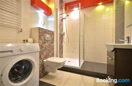这家1卧室公寓配备起居室、带卫星频道的平板电视、带冰箱和洗碗机的设施齐全的厨房以及1间带淋浴设施的浴室。这家公寓还提供休息区、洗衣机以及1间带吹风机的浴室。