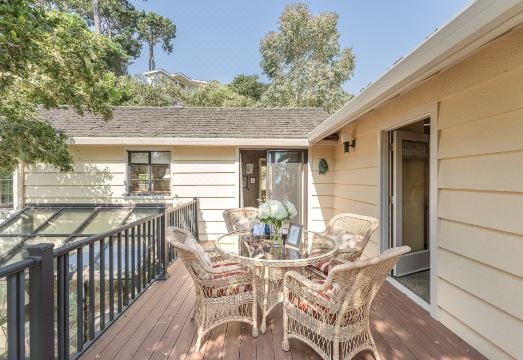 Property Manager is proud to present "Mabuhay"! This 2-level, 3 bedroom, 2 bathroom vacation home sleeps up to 6 guests.Guests will enjoy peeks of the ocean over the treetops from multiple rooms in the home.Situated at the end of a cul-de-sac and tucked inside a shared, gated driveway, this charming 1,849 sf home has it all.Nestled near Pescadero Canyon, Mabuhay is perfectly located in Carmel - where you can walk about 5 blocks to get to Ocean Avenue and all the downtown Carmel by the Sea shops and restaurants. And just a 15 minute drive will get you to historic old Monterey, Cannery Row and the Monterey Bay Aquarium.Living SpacesThe cozy living room has a wood burning fireplace, a comfortable sofa and two upholstered arm chairs in addition to shelves filled with a library of books. An Apple TV provides programming on the flat screen TV (no cable). A dining table and a separate desk provide surfaces for multiple activities.Kitchen and DiningThe fully-equipped kitchen is full of light and set up for efficiency. Small appliances include a microwave, drip coffee maker, Keurig single-cup coffee maker, blender, toaster and a small food processor.The dining table is in the living space near the fireplace and you can catch peeks of the ocean while you dine.A set of chairs and table outside on the brick patio just outside the kitchen is another great space to enjoy meals together.Bedrooms and BathroomsUpstairs on the main level with the living areas, Bedroom #1 has a queen bed and direct access to the upstairs bathroom with a shower-over-tub. The large closet has a separate vanity sink. The upstairs bathroom is also accessible from the hallway.Go down the circular staircase to find two more bedrooms:Bedroom #2 has a queen bed and a small seating area.Bedroom #3 has a queen bed and a solarium space which brings in ample sunlight, garden views and access to the garden. A corner with an armchair, ottoman and lamp is a perfect place to kick up your feet and catch up on some reading.The downstairs hallway bathroom has a shower-over-tub adorned with pretty blue tiles.Downstairs you will find a dedicated laundry room with washer and dryer and access to the back yard. Conveniences like an iron, ironing board and even an pack n play will have you feeling at home in an instant.The yard is terraced and a path wraps around the home. A brick terraced patio outside the kitchen has outdoor furniture and if you climb up to the topmost terrace, you can sit on a bench and enjoy sunset views. The yard is fully fenced and the driveway has a metal gate that swings open and closed.Sorry, Mabuhay does not allow pets.Important Parking Information:The home is at the end of a steep, curvy, shared driveway. There is only space for you to park 1-2 modestly-sized vehicles max. Specific parking instructions will be provided when you book this home. The property is not suitable for over-sized vehicles. Additional parking is found one-two blocks away in case you have visitors during your stay..