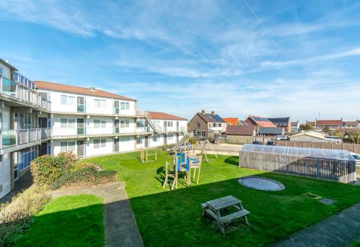 Ideal for a romantic getaway or a quiet beachside break, the apartment is pet-friendly and includes access to a garden, lawn, and nearby playground and trampoline—great for visiting families. A private parking space and bicycle storage are also available. For larger groups, this apartment can be booked together with the adjacent unit, offering connected terraces for shared outdoor enjoyment. Apartment in Callantsoog near the Beach