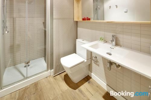 这家公寓配有1间卧室、起居室、带冰箱和咖啡机的设施齐全的厨房以及1间带淋浴设施和吹风机的浴室。这家公寓也配备休息区和1间浴室。