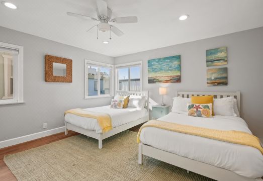HIGHLIGHTS-Steps to Beach and Bay-Patio w/ Ample Seating and Grill-Al-Fresco Dining-Fireplace-Garage & Off-Street ParkingDESCRIPTIONStep outside and you ll be just a few steps away from the sand, making it an ideal location for beach adventures for guests of all ages. After a day at the beach, unwind in our spacious outdoor area, perfect for lounging, dining al-fresco, or grilling up some delicious meals on warm summer afternoons. You ll love enjoying the stunning SoCal sunset with a glass of wine in hand!As you enter the home, you ll be greeted by a large and comfortable living room with an L-sectional sofa, cozy gas fireplace, and a TV mounted above it, perfect for movie nights or catching up on your favorite shows. The open floor plan allows for easy meal preparation in the well-stocked kitchen, which flows seamlessly into the dining room. Bar seating is also available for quick meals on-the-go before your daily adventures.When it s time to retire for the night, retreat to the bedrooms where you ll find a luxurious master bedroom with a king bed, walk-in closet, and attached ensuite with a soaking bath tub to unwind after a long day. Two guest rooms feature queen beds, perfect for couples, while the fourth guest bedroom has two double beds, ensuring everyone has a comfortable place to sleep.Book with us and experience a beautifully designed home away from home that s perfect for enjoying the fun and excitement of San Diego while still having a relaxing retreat to come back to. Don t wait, book now and make the most of your San Diego-bound getaway!SUITABILITY-25+ age limit or family groups-Exterior security camera and decibel meters-ID and credit card verification required-Smoking is not prohibited anywhere at the home including all exterior areas.-No over-occupancy at any point during stay, all guests must be pre-approved by Coast.SLEEPING ACCOMMODATIONS (sleeps 10, 8 adults max)-1 King (3rd floor, sleeps 2)-1 Queen (2nd floor, sleeps 2)-1 Queen (2nd floor, sleeps 2)-2 Double (2nd floor, sleeps 2 adults or 4 children)THINGS TO KNOW-Guests must sign a separate e-sign agreement with important terms and conditions and ID and credit card verification is required to complete the booking process.-Basic Beach gear provided (beach chairs, beach towels).-San Diego Airport flight path runs over South Mission Bay. Airplane noise may be heard; however, departing flights are not permitted between 11:30pm-6:30am. The home is totally worth it!-In accordance with the local Short Term Rental Ordinance, this home is equipped with a device that monitors noise levels (but does not record sound). It is located in the main living area. ATTENTIONThis home is located in a high-density neighborhood and is only suitable for quieter groups..