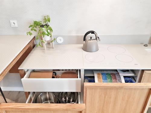 这家空调公寓配有1间卧室、起居室、带冰箱和咖啡机的设施齐全的厨房以及1间带坐浴盆和淋浴设施的浴室。这家公寓还提供休息区、洗衣机以及1间带免费洗浴用品的浴室。