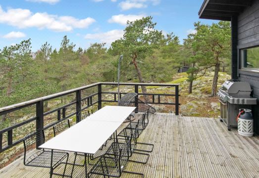 This cabin is situated in a peaceful spot on a rocky plot in the Kasn?s area. Kasn?s harbor, spa, and beach are 1.5 km away. The cabin features a spacious terrace, providing a perfect setting to spend time on a summer day. The terrace is equipped with ample garden furniture and a gas grill.