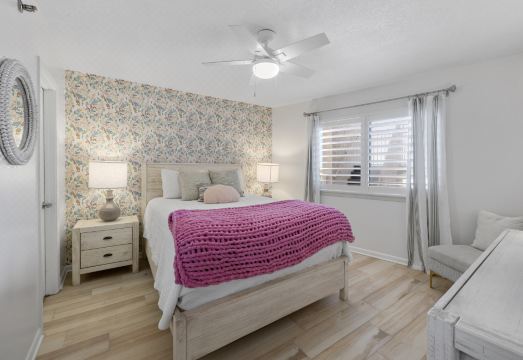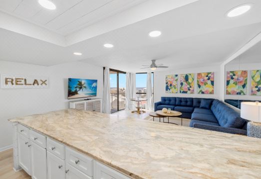 Spacious & Stylish: This 2-bedroom, 2-bath condo comfortably accommodates up to 6 guests, with modern décor and a cozy living area for relaxation after a day at the beach.