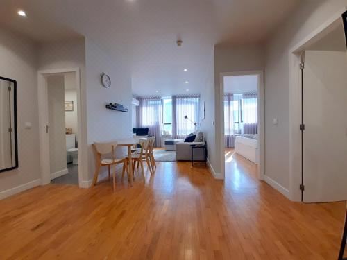 这家空调公寓配有2间卧室、起居室、带冰箱和咖啡机的设施齐全的小厨房以及1间带淋浴设施和吹风机的浴室。这家公寓也拥有休息区和1间浴室。