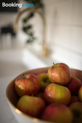 这家公寓配有1间卧室、起居室、带冰箱和咖啡机的设施齐全的厨房以及1间带淋浴设施和免费洗浴用品的浴室。1间浴室配有浴缸,也拥有吹风机,提供毛巾和床上用品。