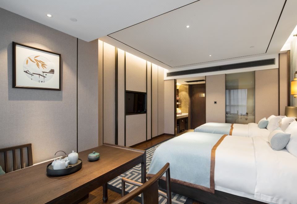 雅悦礼居双床房(全景落地窗+摩天轮城景+古色茶台)