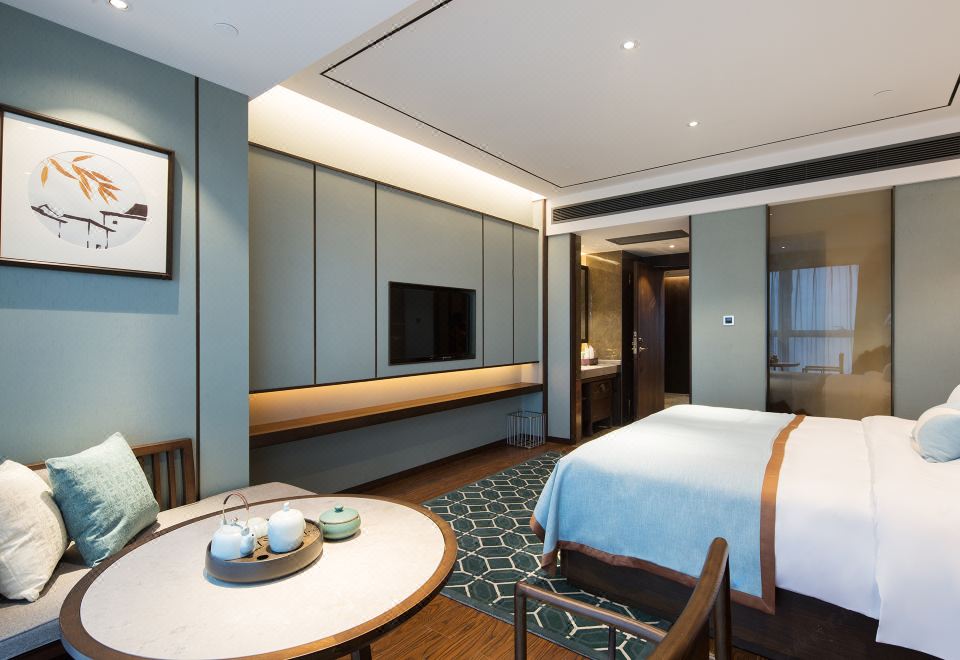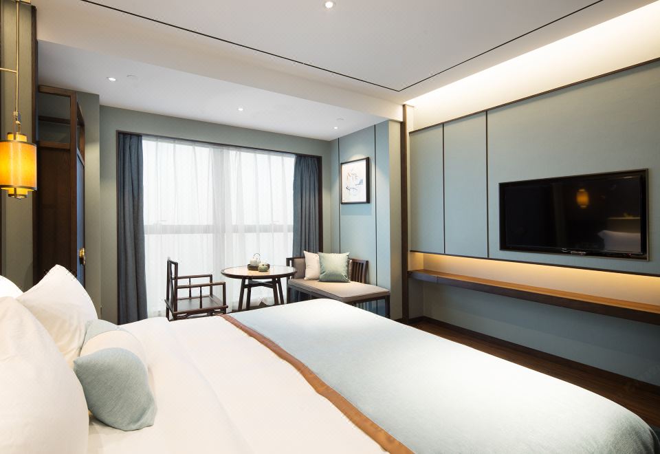 雅悦礼居大床房(全景落地窗+古色茶台+自动窗帘)