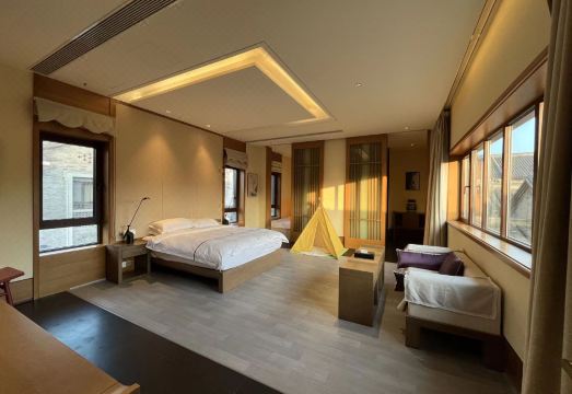 在雅韵流长的即墨古城内,藏有这么一处闹中取静的合院:青石灰瓦、坐落有致,清风习习、竹声窸窣。可谓是偶得幽闲境,遂忘尘俗心,始知真隐者,不必在山林!墨园有独具风格的中式客房、和合书院客房,智能语音系统、智能马桶、中央空调与新风系统等都是标配。同时墨园还有300平米的“探”空间,涵盖了私人影院、桌球、茶室、自助厨房、游戏机等多功能设施供您体验,将中式美学与科技空间无缝结合。希望您可以在这座院子里寻找到国人难以割舍的院子情节,相约即墨古城,我们在墨园等你!