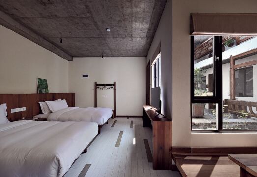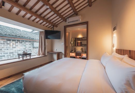 画驻不见山民宿(宏村店)环境安逸宁人,怡然惬意。画驻原址是黟县麻田街上的老酒厂,准确的来说是酒厂的一部分。民宿由和同设计打造,在保留原始构造的基础上,注入了新的活力。画驻设有家庭厨房,茶台、水吧、餐厅、公共影院,各部分功能分明的同时,也打破了空间局限性,给大家创造了一个开放、交流、天涯知客同聚一堂的交友平台。客房则一改原先徽派传统的风格,丰富多彩的色感搭配、多种房型也为青年学生的出游提供了便捷和舒适。带上亲朋好友来一场多人团周末轰趴,约上闺蜜来一场说走就走的思虑计划,画驻不见山一定是你的不二之选。